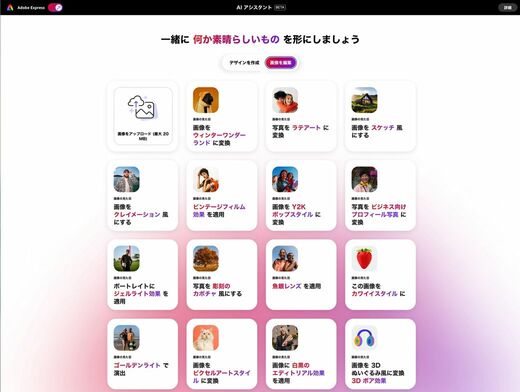 Adobe Expressでは、大幅に生成AIを活用して、ほとんどテキストベースでクリエイティブを作れるようになっている。テンプレートも数多く用意されており、そこから選んで、いくつかコメントを書き込むだけで必要なクリエイティブが得られる。最終的にデザイナーが仕上げるにしても、こちらである程度叩き台を作る……という使い方も可能だ。