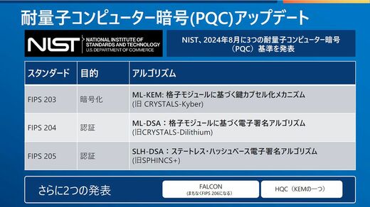 「提案されたPQCアルゴリズムに対し、攻撃安全性、実装の効率性、研究に裏付けられた信頼性などが検証されてきました。現在、新たにHQCを加えた5つの暗号アルゴリズムが選定されていますが、これらは安全性が不確実になれば見直されます」(林氏)
