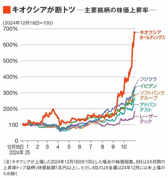 だが足元の株価上昇率を見てみると、ひときわ存在感を放つ「AI銘柄」がある。フラッシュメモリー大手のキオクシアホールディングスだ。