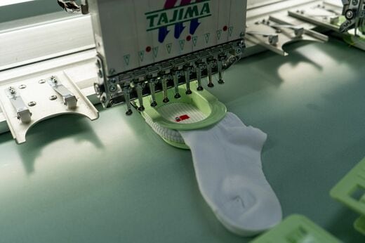 機械の音が鳴り響く中で靴下が作られていく様子を眺めながら、美奈子さんは「うちの会社は靴下屋さんなんや。こんな仕事があるんや」と理解した。