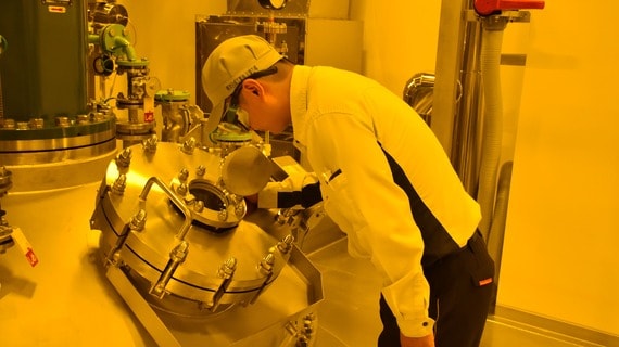 ポリマーは数種類の材料を反応促進剤と共に煮詰めて精製する。それぞれの濃度や窯へと送液するスピード、加熱の温度をコントロールし、各分子を設計通りに結合させねばならない。わずかでも規定の特性から外れると、材料はすべてパーになる。場合によっては、一発で多額の損失を生む。