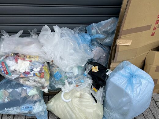 ハロウィン明けの11月1日は状況がより悪化する。路上飲み後のごみの放置が散見され、集積所のごみの上へのポイ捨てが目立っていた。