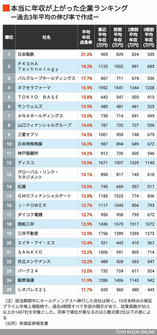 政治・経済・投資 本当に年収が上がった企業ランキング! 3位は「3COINS」のパルグループHD、2位はPKSHA Technology、では1位は? 3分で読める 公開日時:2025/11/12 06:00 田中 久貴 東洋経済データ事業局 フォロー 1/9 PAGES 2/9 PAGES 1〜25位 次ページが続きます:【26〜50位】 3/9 PAGES 4/9 PAGES 5/9 PAGES 6/9 PAGES 7/9 PAGES 8/9 PAGES 9/9 PAGES