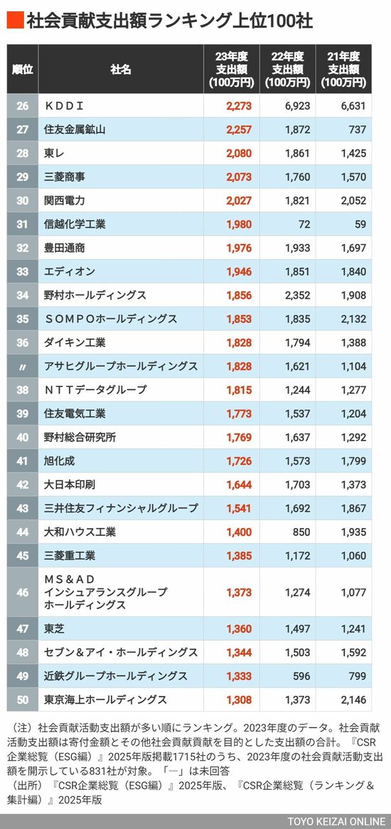 ビジネス #CSR企業総覧 前の記事 次の記事 「社会貢献にお金を出す」企業ランキング 5位はJT、4位はサントリーホールディングス、ではトップ3は? 7分で読める 公開日時:2025/11/14 06:00 岸本 吉浩 東洋経済 記者 フォロー 1/7 PAGES 2/7 PAGES 3/7 PAGES 4/7 PAGES 5/7 PAGES 26~50位 次ページが続きます 6/7 PAGES 7/7 PAGES