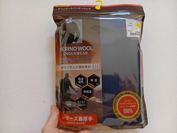 私は春夏秋冬、エアリズムかヒートテックを着て過ごしているのだが、これはメリノウール100%衣類の価格が高過ぎるため、とても手が出せなったという理由も大きい(コスパ抜群のユニクロ商品が好きだからという理由もある)。価格破壊を起こしてくれたワークマンに感謝しつつ、さっそく人生で初めてメリノウール100%のインナーを着てみた。