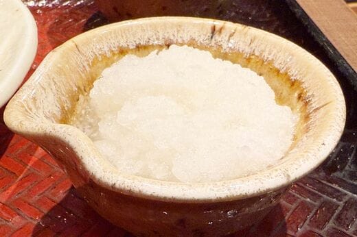 付け合わせの大根おろしは、提供直前に擦りおろすのが大戸屋流。水分を切りすぎず、雪のようにふわふわで軽やか。おろしたての大根おろしは、ピリリとした辛味が立つので、1口目はほっけに乗せて、しょうゆなしでパクリ。この爽やかな辛味が、脂の旨味をサッパリと引き締めてくれます。