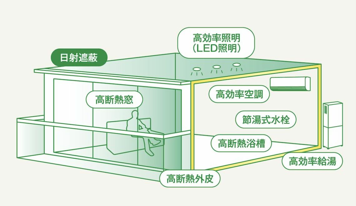 ※2 再生可能エネルギー等を導入することにより、年間の1次エネルギー(石油、天然ガス、石炭、原子力、太陽光、風力など、加工されない状態で供給されるエネルギー)消費量の収支もゼロとすることを目指した住宅。国が定めたZEH-M(ゼッチ・マンション)の評価基準では、再生可能エネルギー等を除き、共用部を含む住棟全体で基準1次エネルギー消費量から20%以上を削減する「ZEH-M Oriented」以上のものを指す。