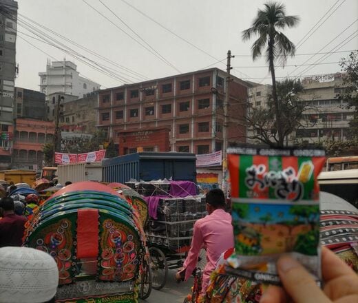 2025年2月にバングラディシュへ渡航した際は、おにぎりせんべいが大活躍した。リキシャと呼ばれる人力車に乗っているとき、隣のリキシャにいた女子学生から「コンニチハ」と日本語で話しかけられた。なんでも日本が好きで、日本語の勉強をしているそうだ。