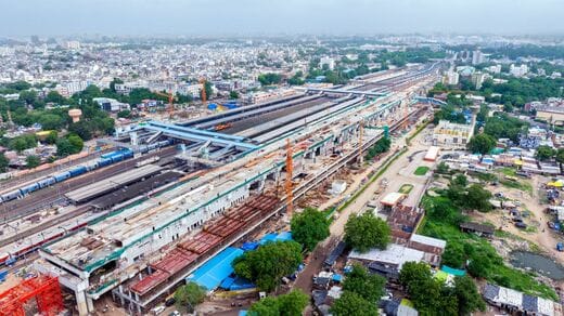 インドではムンバイ―アーメダバード間508kmの高速鉄道が新幹線方式で建設中。土地収用を最小限に抑えるため全区間の92%を高架とした。高架橋の建設では、橋梁の桁を現場であらかじめ製作しておき、順次橋脚の上部に架設する橋梁上板一括架設工法(Full Span Launching Method : FSLM)という工法がインドで初めて採用された。