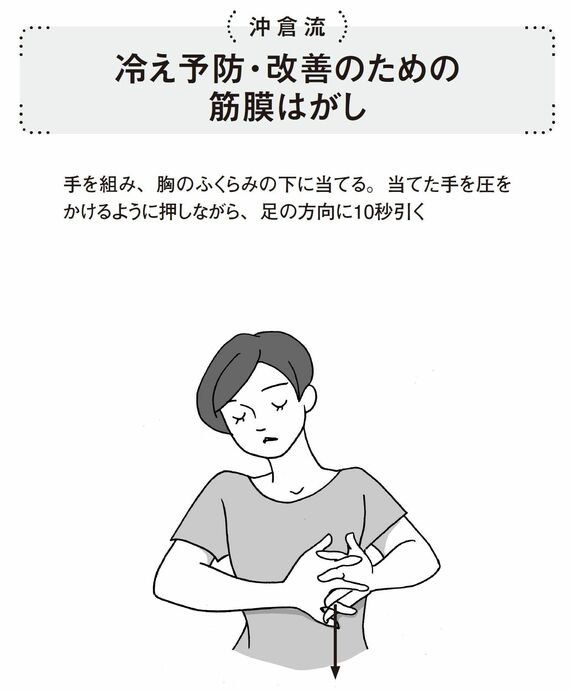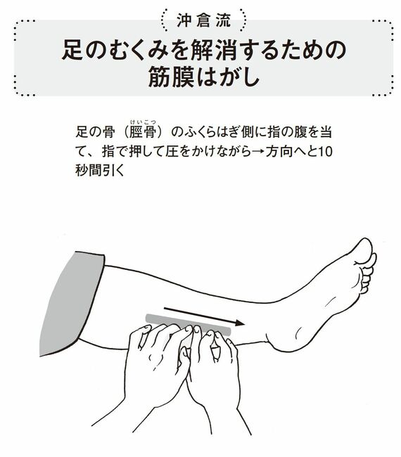 「冷え予防・改善のための沖倉流筋膜はがし」を紹介しますので、足の冷えに悩んでいる方は、ぜひ取り組んでみてください。こちらを、左右やることをおすすめします。