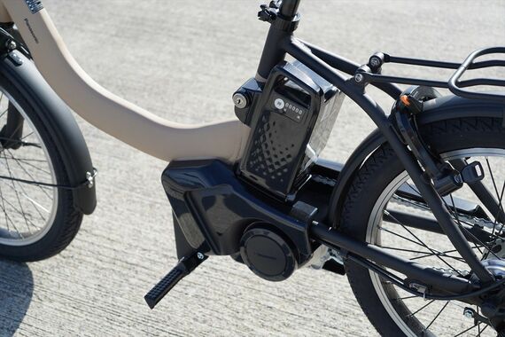 満充電で約40kmの距離を走れる16Ahのリチウムイオンバッテリーも電動アシスト自転車と共用で、当然ながら取り外して自宅などで充電できる。80%までの急速充電に対応するのも、同様だ。
