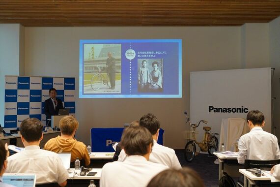 発表会で最初に紹介されたのは、パナソニックの創業者である松下幸之助と自転車の関わりだった。1894年に和歌山県で生まれた幸之助が、小学校を中退し、大阪に出て奉公に入ったのが自転車店だったのだ。
