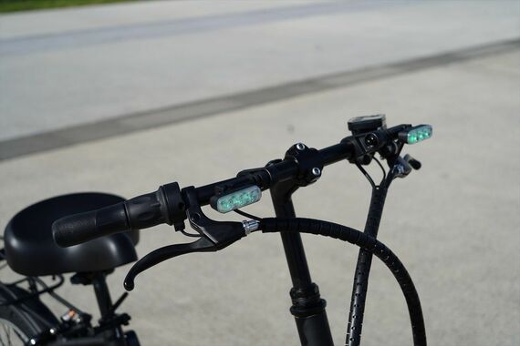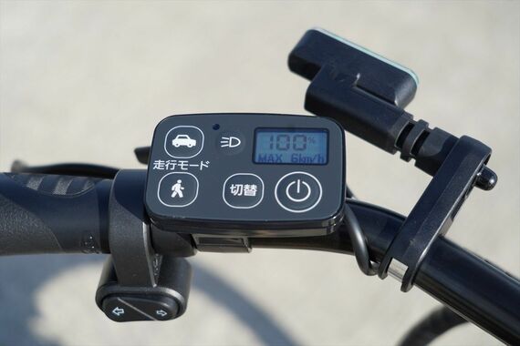 試乗は海沿いの平坦な舗装路面で行われた。見た目は自転車に近いが、ペダルの代わりにモーターサイクルのようなステップがあり、前後に緑色に点灯する最高速度表示灯が追加されていることが目につく。