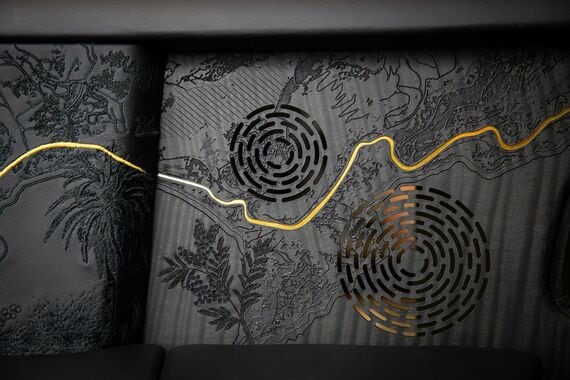 さらに、そこにステッチを加えていって完成。前席から後席空間を眺めると、左から右へと、芸術作品を思わせる絵巻物となっている。
