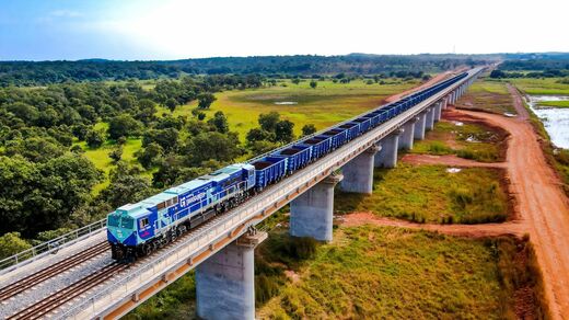 シマンドゥ鉱山で採掘された鉄鉱石は、最初のロット約1万トンの搬出が10月中旬に始まった。これらの鉱石は、新たに建設された「トランスギニア鉄道」でモレバヤ港まで運ばれ、鉱石運搬用のバージ船(はしけ)に積み替えられた。
