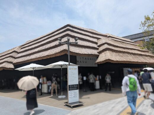 EARTH MARTは「食を通していのちを考える」をテーマに、スーパーマーケットを模した空間で展示した。「いのちのフロア」では、日本人が一生に食べる卵2万8000個を天井から吊るしたシャンデリアで表現した。「未来のフロア」では、ゲノム編集の魚を「すきやばし次郎」の寿司職人が握る展示や、日本が誇る25種類の食材「EARTH FOODS 25」を気鋭のシェフ5人が料理に仕立てた展示を見せた。協会が主催するシグネチャーパビリオンとして運営した。