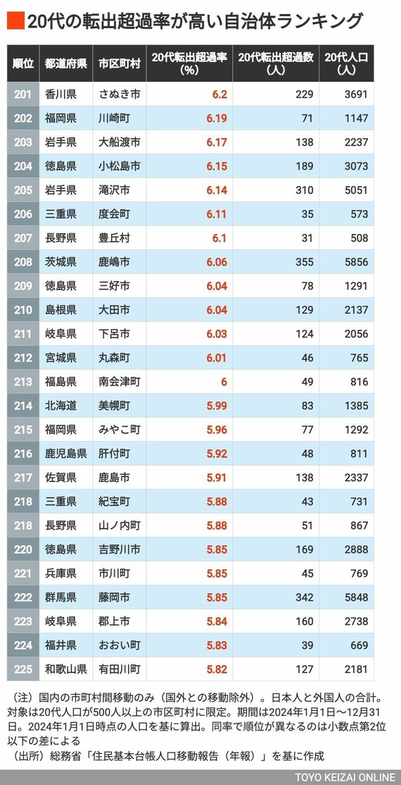若年層の人口流出が目立つ地域はどこ? 20代の「転出超過率」が高い自治体ランキング