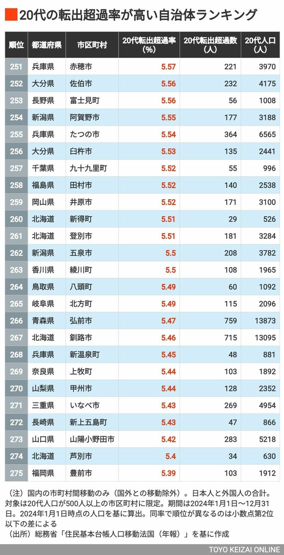 若年層の人口流出が目立つ地域はどこ? 20代の「転出超過率」が高い自治体ランキング