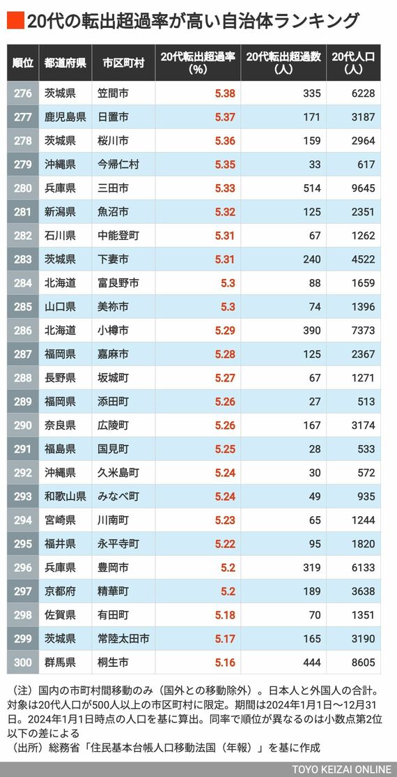 若年層の人口流出が目立つ地域はどこ? 20代の「転出超過率」が高い自治体ランキング