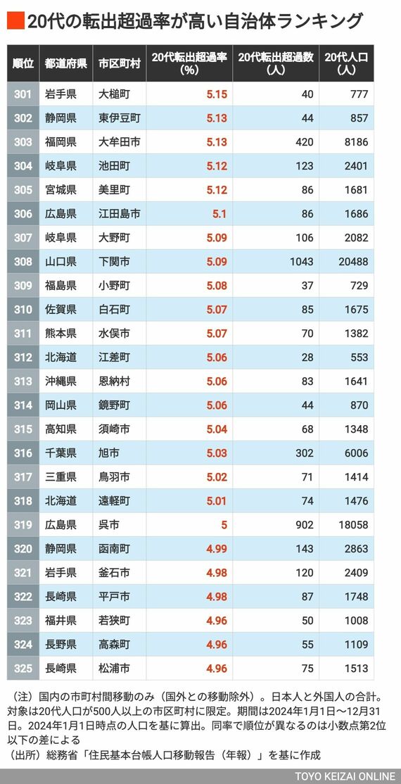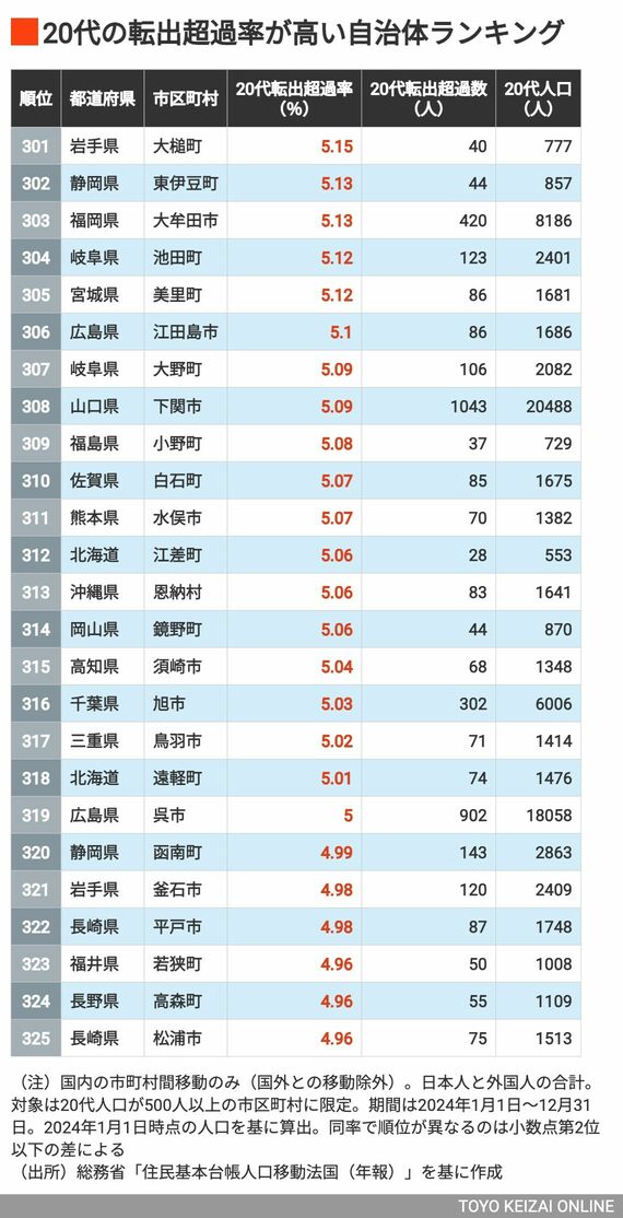 若年層の人口流出が目立つ地域はどこ? 20代の「転出超過率」が高い自治体ランキング