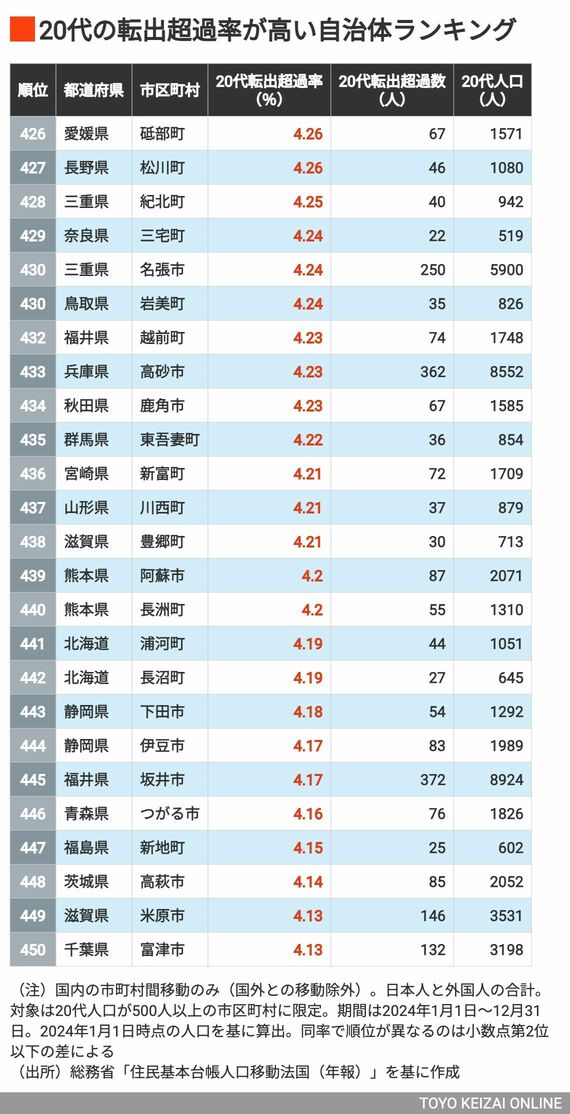 若年層の人口流出が目立つ地域はどこ? 20代の「転出超過率」が高い自治体ランキング