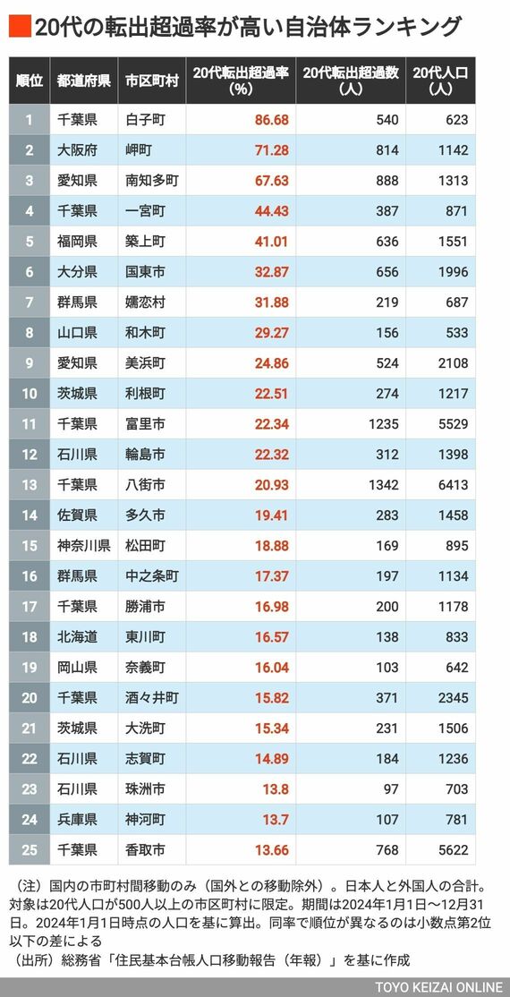 若年層の人口流出が目立つ地域はどこ? 20代の「転出超過率」が高い自治体ランキング