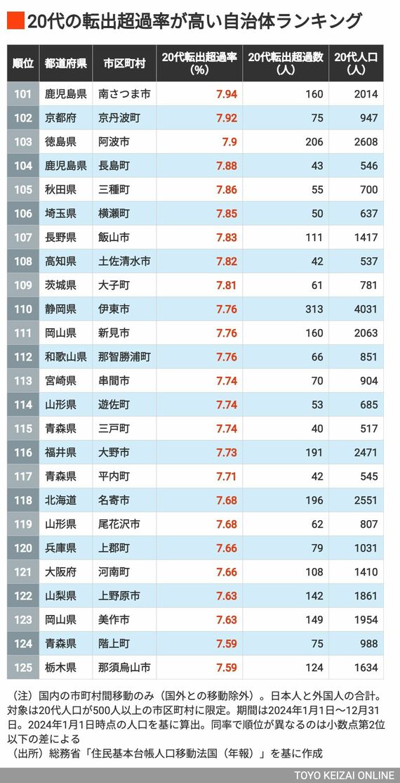 若年層の人口流出が目立つ地域はどこ? 20代の「転出超過率」が高い自治体ランキング