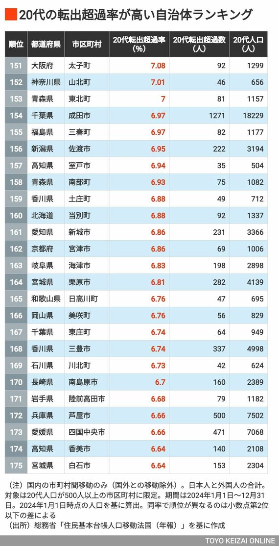 若年層の人口流出が目立つ地域はどこ? 20代の「転出超過率」が高い自治体ランキング