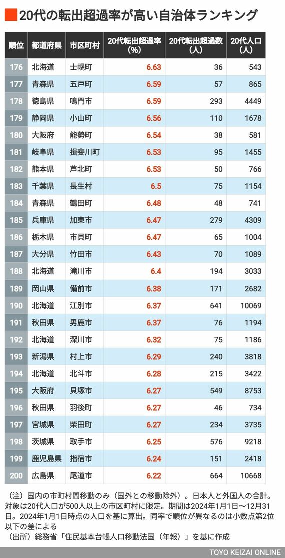 若年層の人口流出が目立つ地域はどこ? 20代の「転出超過率」が高い自治体ランキング