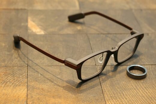 その実、このEven G2は、目の前の空間に640×350ピクセルまでのグリーンの文字を表示できる。両目に表示されるから奥行きを表現できて空間に浮かんでいるように見えるのだ。「今どき単色表示?」と思われるかもしれないが、使ってみると、実際のリアル空間での視野を大切にして、表示は追加情報として利用するならそれで十分だと気がつく。