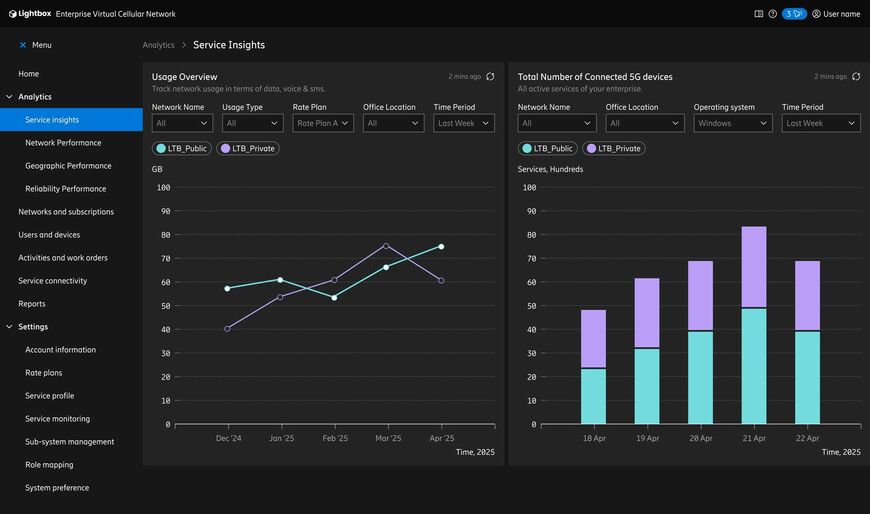 5G接続デバイスの使用状況を表示したEVCNの管理画面。エリクソンのインハウスデザイン組織が画面デザインを行い、世界的に権威のあるiFデザイン賞2025を受賞