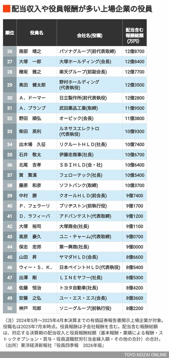 2位は188億円の孫正義氏、1位は217億円の… 配当含む「年収"1億円超"」上場企業役員ランキング