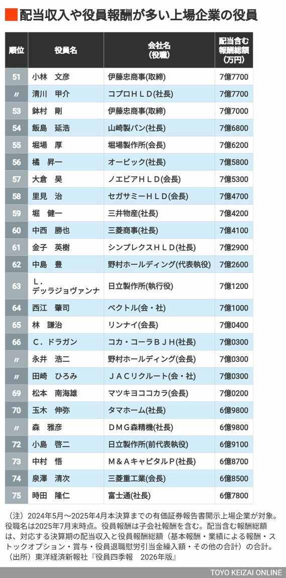 2位は188億円の孫正義氏、1位は217億円の… 配当含む「年収"1億円超"」上場企業役員ランキング