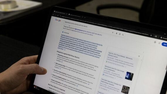 ウルフ・リバー・エレクトリックの幹部が自ら確認した瞬間、当初の困惑は不安へと変わった。グーグルのAI技術「Gemini(ジェミニ)」が検索結果の最上部に表示した情報に、そうしたウソが含まれていたからだ。さらに、検索ボックスに「ウルフ・リバー・エレクトリック」と入力するだけで、訴訟和解に関するワードが検索候補として自動的に表示された。