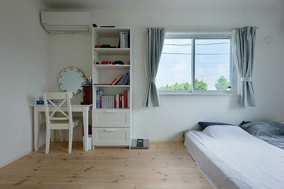 個室は寝室が約8畳、子ども部屋が6畳と、必要以上に広くはしていません。しかし、ふだんは個室のドアを開け放っているので、それでも十分広いと感じられます。