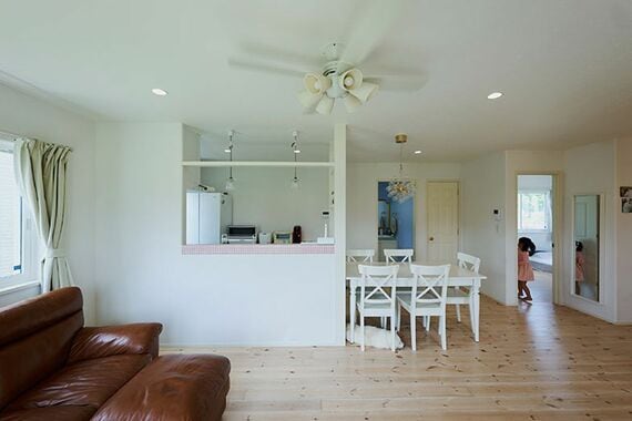また、リビングから放射状に子ども部屋や寝室へとつながる設計にしたことで、家族の気配を常に感じられます。「ドアを開けたらすぐリビングだから、家族の気配や光が行き交い、家が明るい雰囲気になる気がします」(みなこさん)