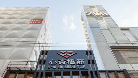 心斎橋筋商店街の入り口に旗艦店をオープンしたZARA。真向いにはライバルであるユニクロの大型店がそびえたつ(撮影:ヒラオカスタジオ)