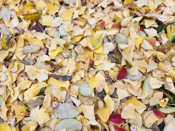 何本かあるイチョウの大木の下にはきれいな黄色のイチョウの葉、そして雌株の下のは銀杏(ぎんなん)の実がいくつも落ちていて、独特な匂いを放っています。