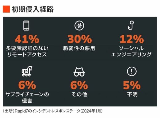 ――ランサムウェア攻撃の起点となるのは、以前はフィッシングなどのメール経由でしたが、最近はVPNなどのネットワーク経由が増えているようです。最新のデータではどうなっていますか。