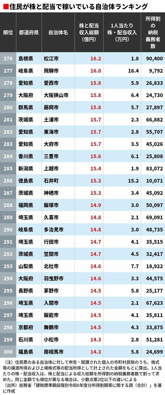 住民が株式投資で稼いでいる自治体ランキング 5位は東京都世田谷区、4位は愛知県名古屋市、ではトップ3は?