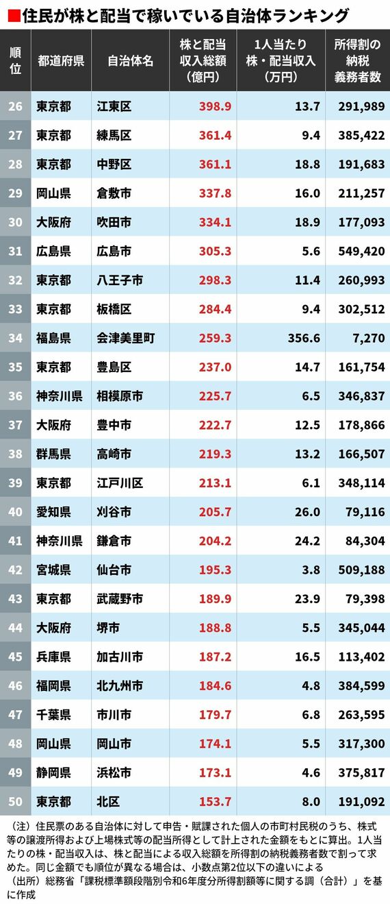 住民が株式投資で稼いでいる自治体ランキング 5位は東京都世田谷区、4位は愛知県名古屋市、ではトップ3は?