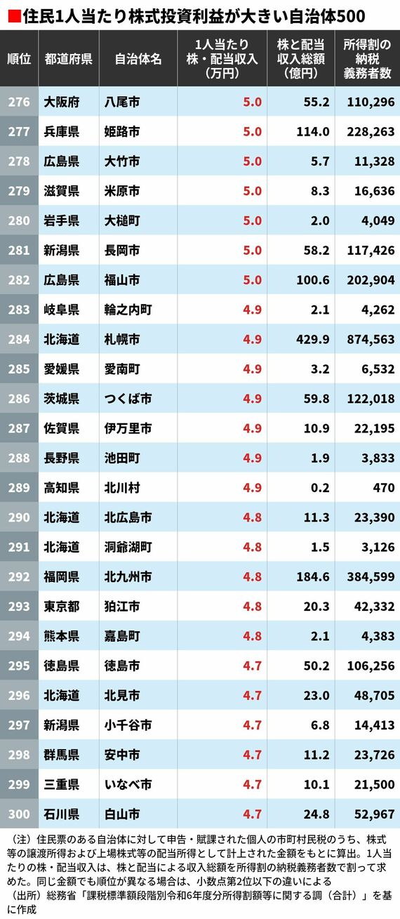 住民1人当たり株式投資の稼ぎが大きい自治体ランキング 5位は東京都渋谷区、4位は千葉県浦安市、ではトップ3は?