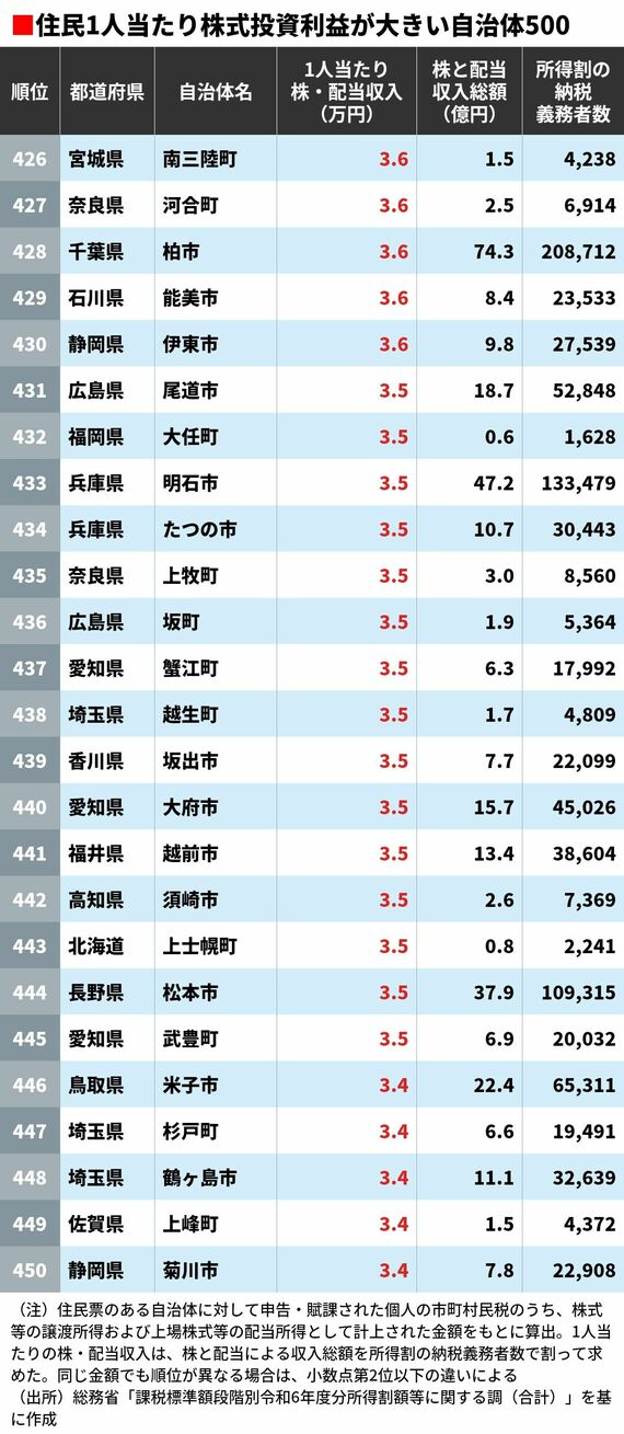 住民1人当たり株式投資の稼ぎが大きい自治体ランキング 5位は東京都渋谷区、4位は千葉県浦安市、ではトップ3は?