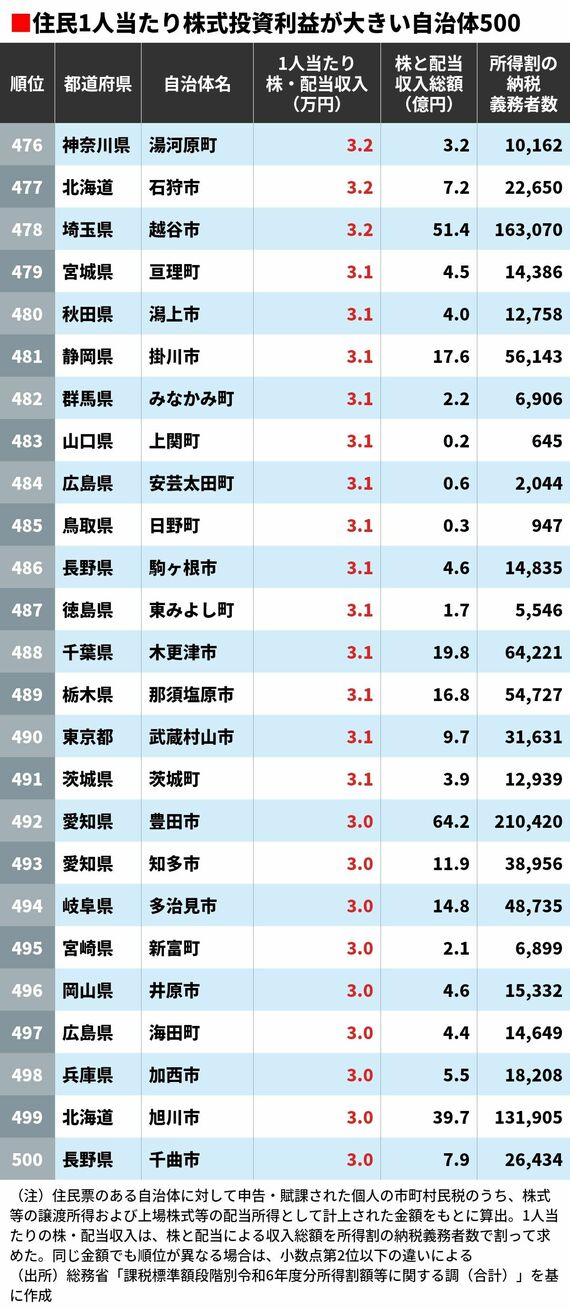 住民1人当たり株式投資の稼ぎが大きい自治体ランキング 5位は東京都渋谷区、4位は千葉県浦安市、ではトップ3は?