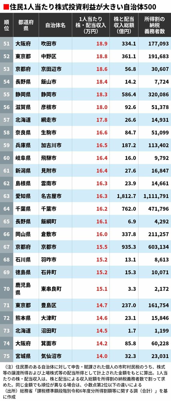 住民1人当たり株式投資の稼ぎが大きい自治体ランキング 5位は東京都渋谷区、4位は千葉県浦安市、ではトップ3は?
