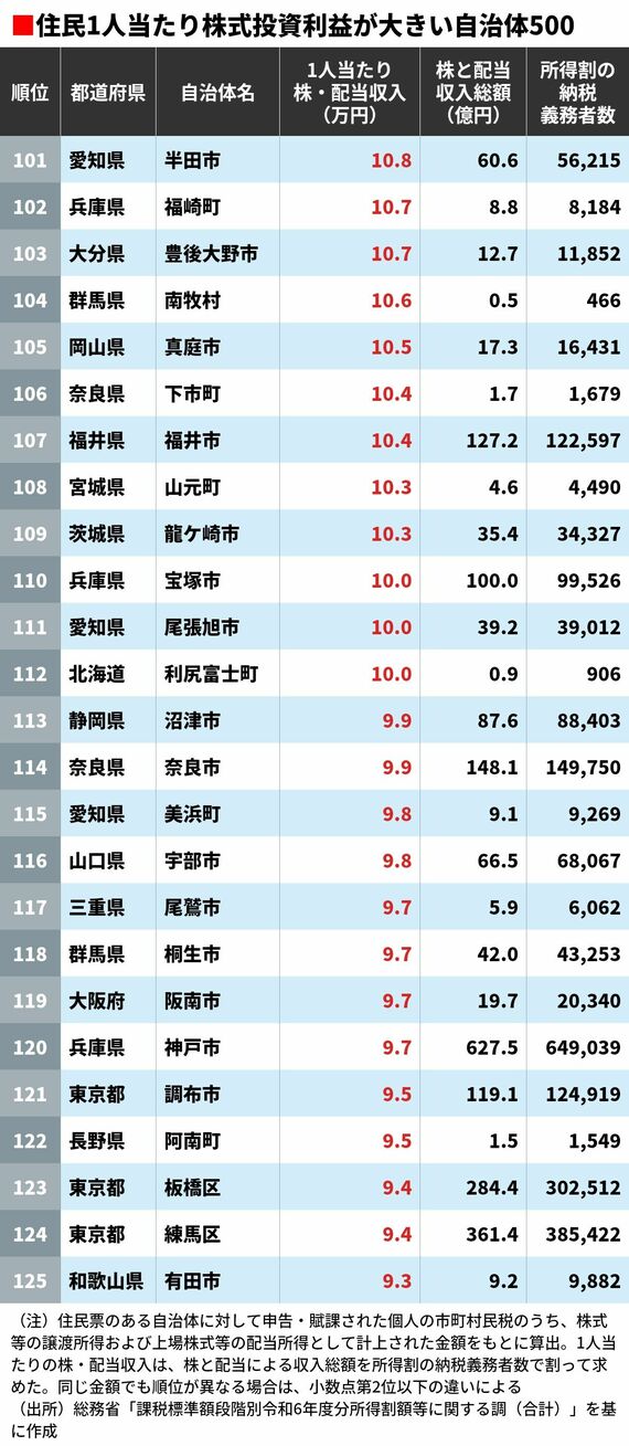 住民1人当たり株式投資の稼ぎが大きい自治体ランキング 5位は東京都渋谷区、4位は千葉県浦安市、ではトップ3は?