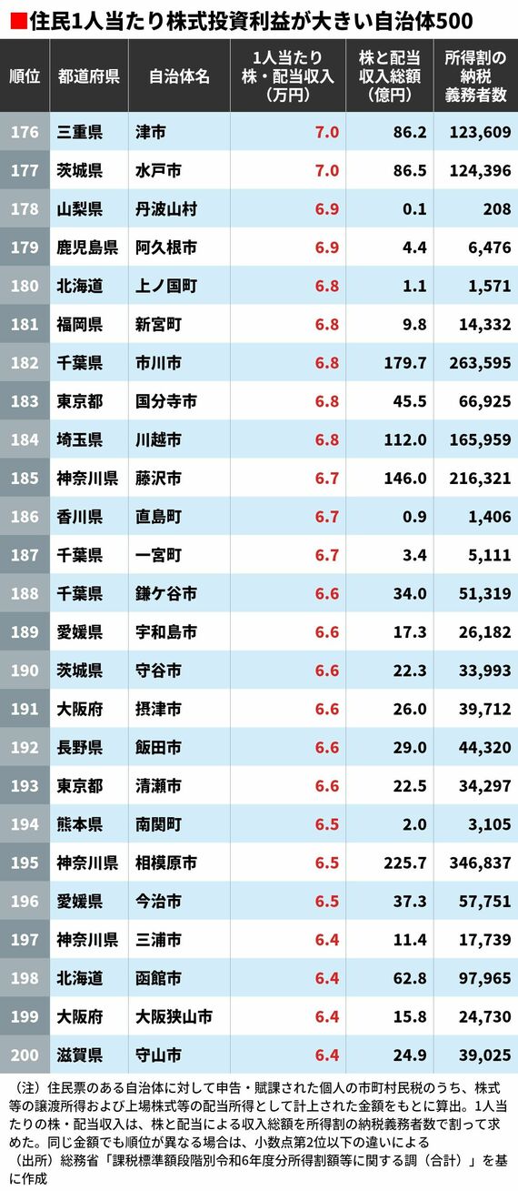 住民1人当たり株式投資の稼ぎが大きい自治体ランキング 5位は東京都渋谷区、4位は千葉県浦安市、ではトップ3は?