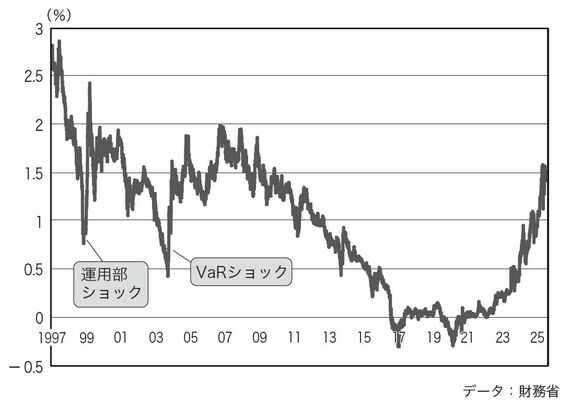 2003年の9月までに利回りは1.6%を超え、上昇幅はおよそ1.2%となりました。これが「VaR(バー)ショック」と呼ばれているものです(下図参照)。