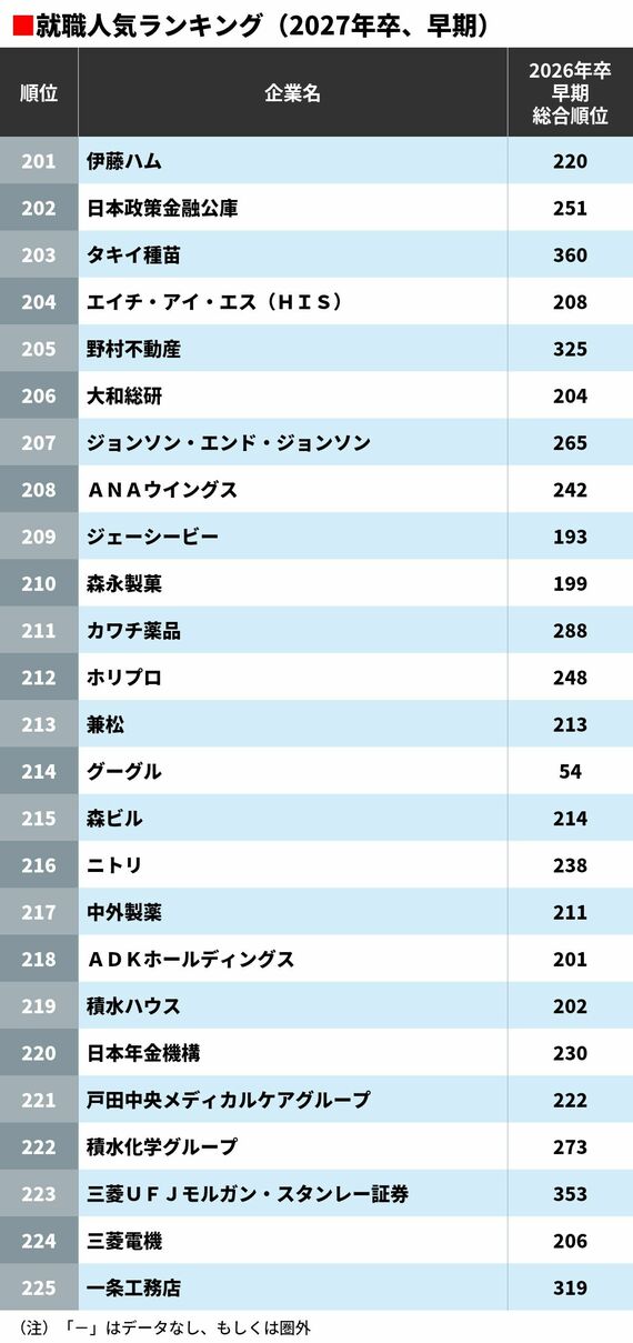 早期に動く就活生が選ぶ「就職人気企業ランキング」 10位三菱商事、9位バンダイ、8位丸紅、それより上位に入ったのは?