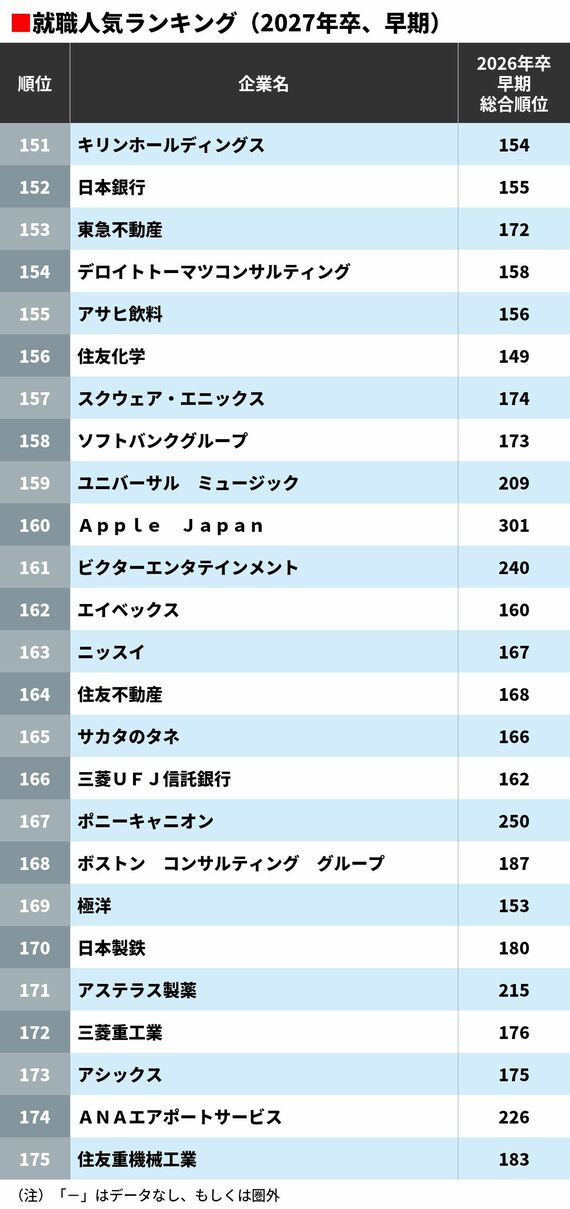 早期に動く就活生が選ぶ「就職人気企業ランキング」 10位三菱商事、9位バンダイ、8位丸紅、それより上位に入ったのは?